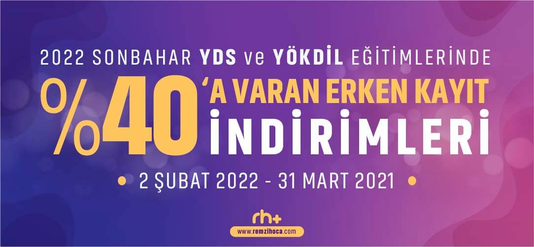 YDS-YÖKDİL online eğitim ve çalışma paketlerinden kitap, ders notu ve yardımcı kaynaklarına kadar www.remzihoca.com adresinden yapacağınız tüm eğitim ve ürün satın alımlarında Şubat ayı boyunca %25 indirim, Mart ayı boyunca ise %20 indirimden faydalanabilecekseniz.