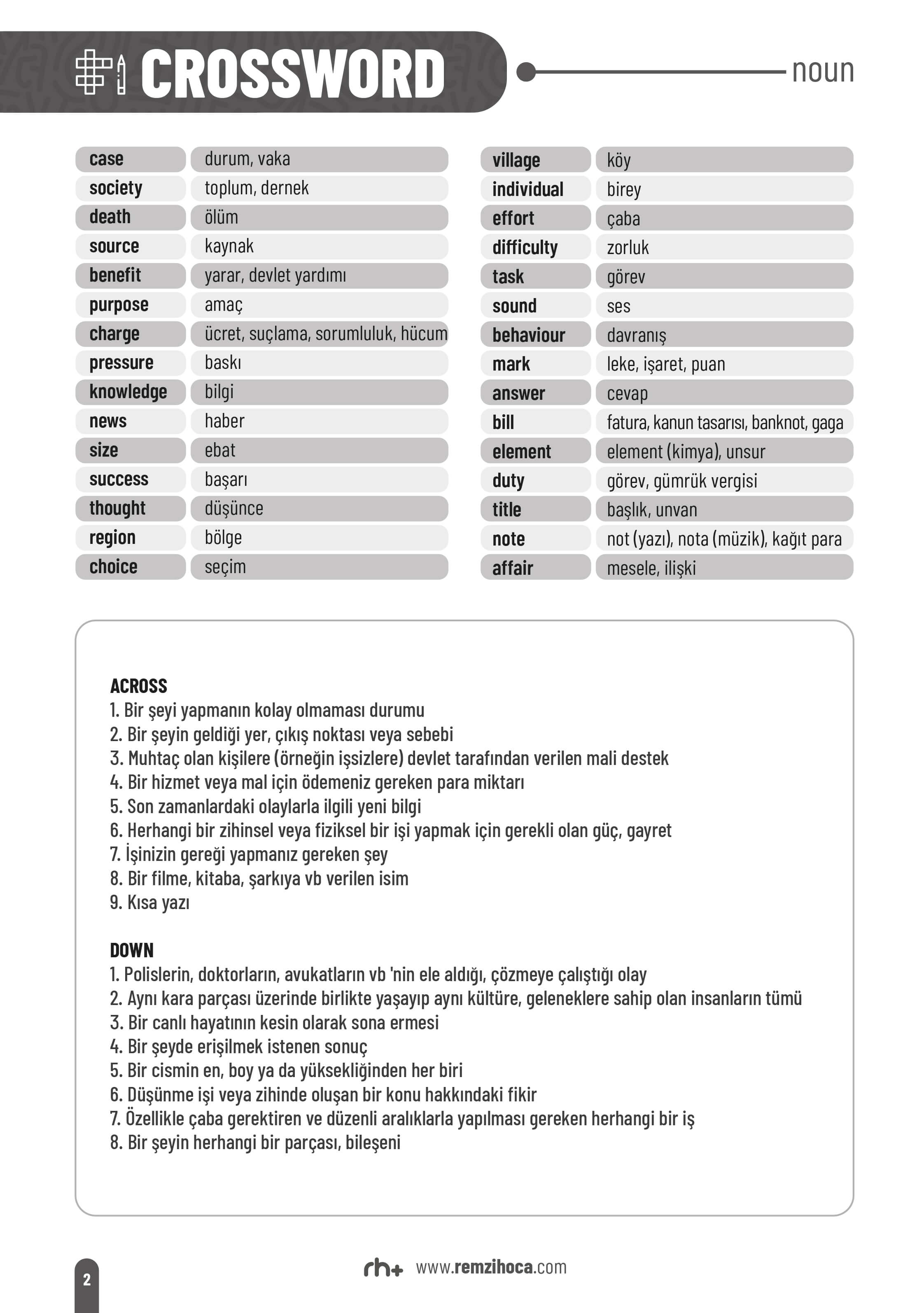 Kitapçıktaki her bir bulmacada ilk olarak 30 kelimelik bir liste bulunmaktadır. Bulmacayı çözmeden önce bu listedeki kelimeleri birkaç kez tekrar etmenizde fayda vardır. Daha sonra listenin alt kısmında bulmacaya hangi kelimeleri yazacağınızı gösteren açıklamalar bulunmaktadır. Bu açıklamalar aynı zaman kelimelerin anlam açıklamalarıdır. Kelimelerin Türkçe anlamlarına ek olarak bu açıklamaları da okumanız, kelimelerin aklınızda daha kolay kalmasını ve yukarıdaki örnekte gösterdiğimiz gibi başka kelimelerle karıştırmamanızı sağlayacaktır.