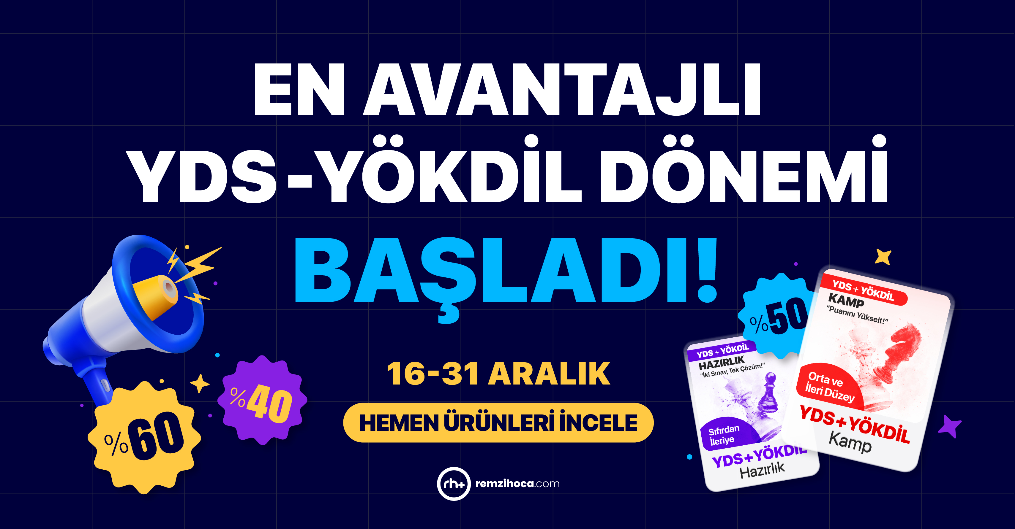 Önemli Not: Remzi Hoca YDS - YÖKDİL Erken Kayıt İndirimleri dahilinde genel indirimler “geçmiş dönem” derslerinde ve ders notlarında geçerli olmayacaktır. (2025 İlkbahar Grupları)