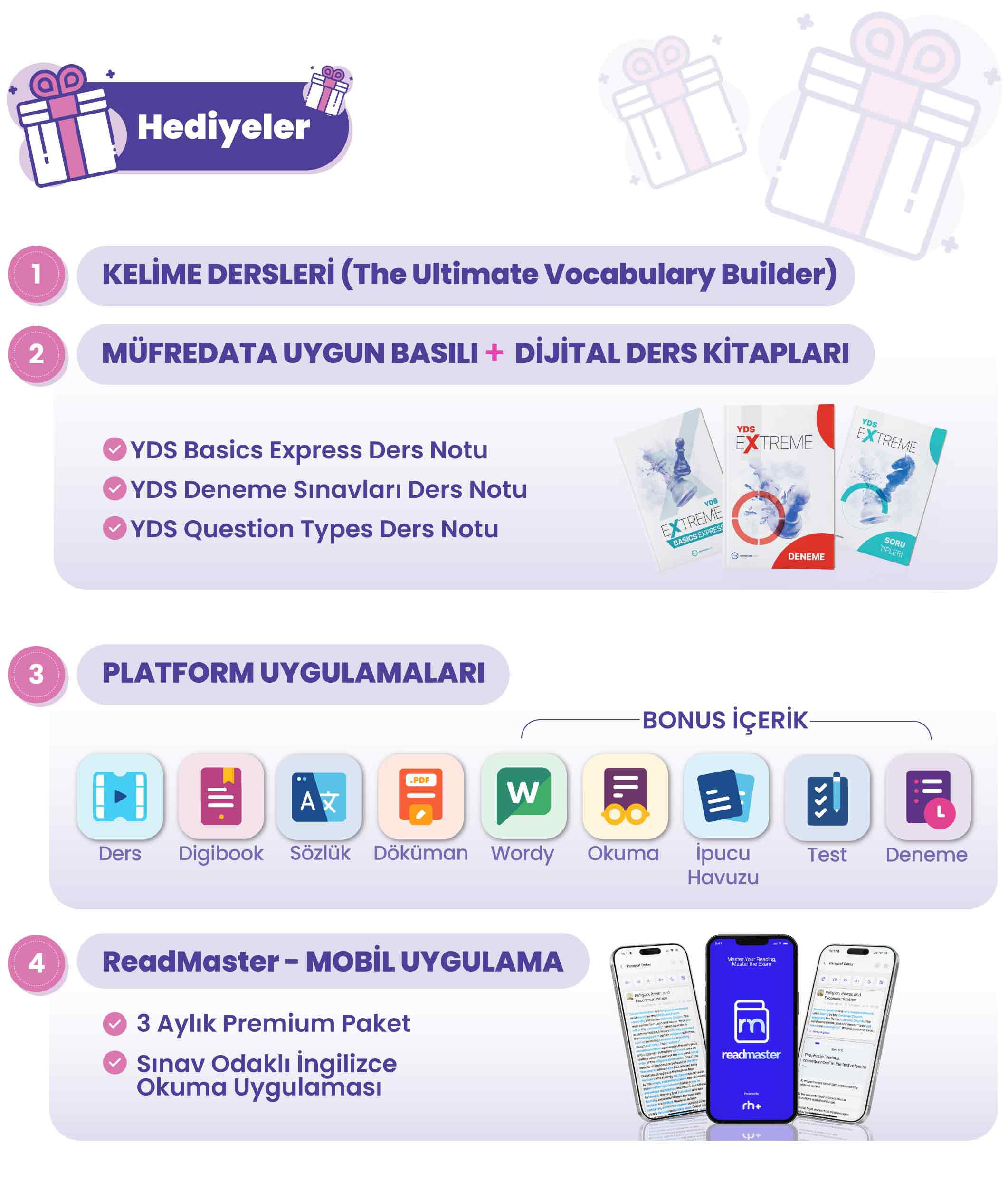 YDS Express Grubu ile sizi sınavda başarıya ulaştıran bilgi, teknik ve tecrübeyi 3 aşamada size aktarıyoruz.