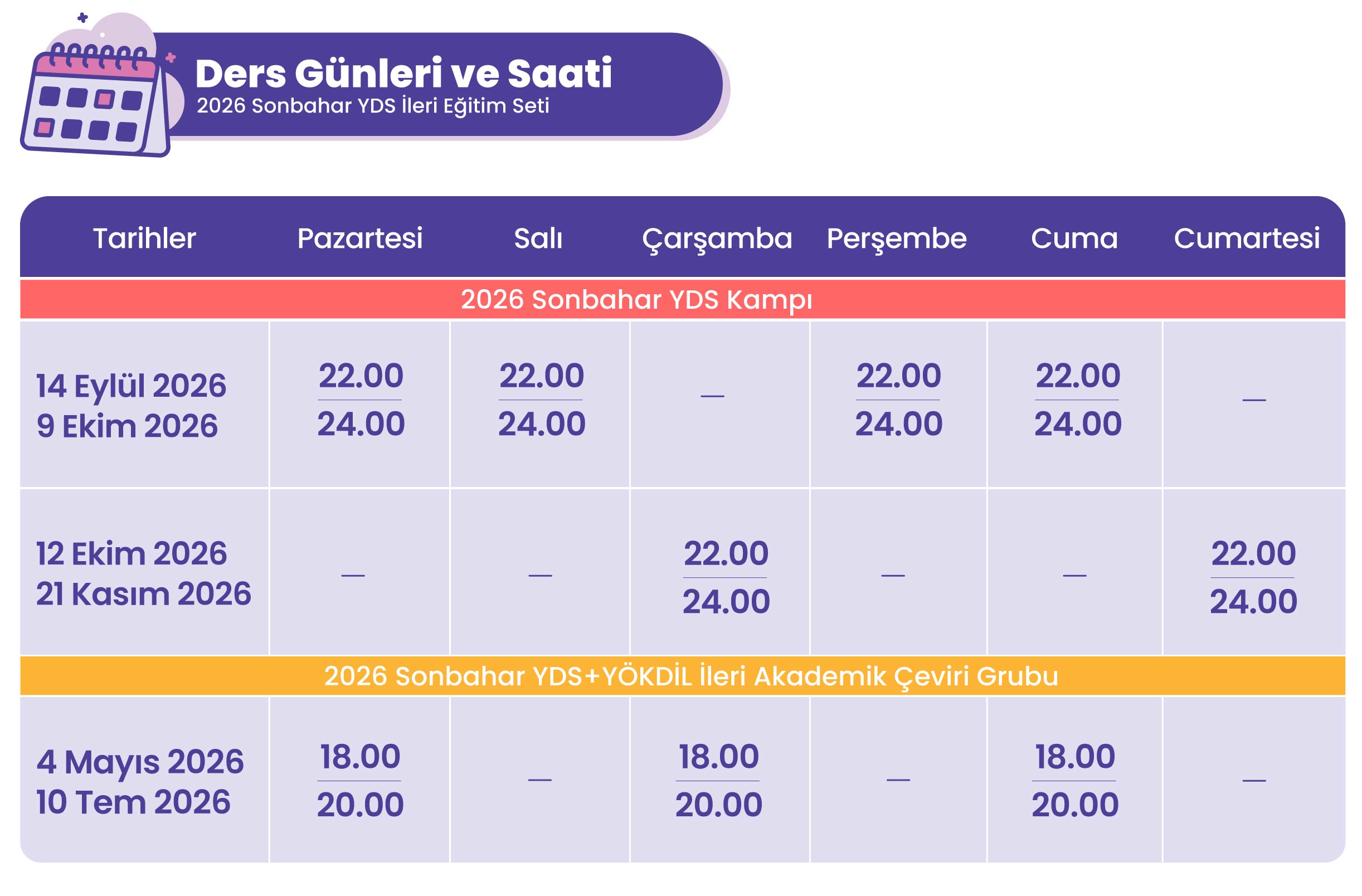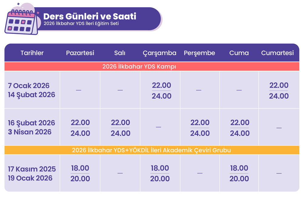 YDS'de orta ve ileri düzey adaylara Akademik Çeviri dersleri ile desteklenmiş etkili bir eğitim programı sizleri bekliyor.
