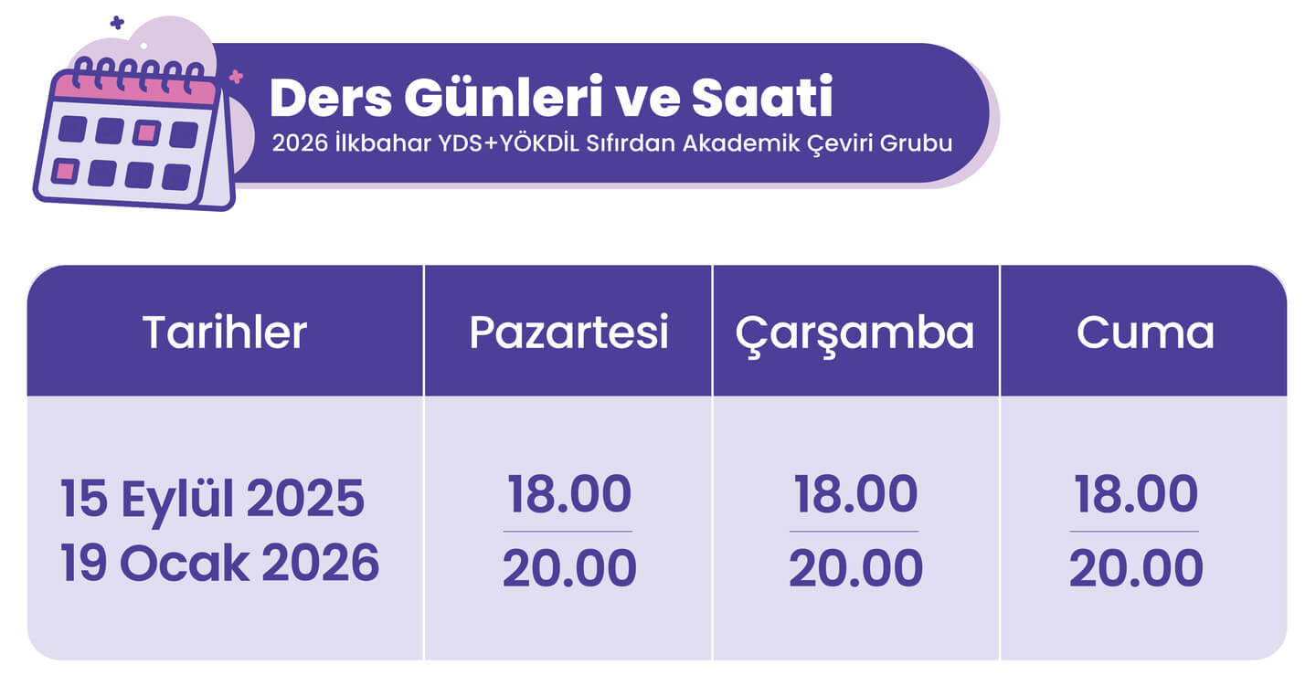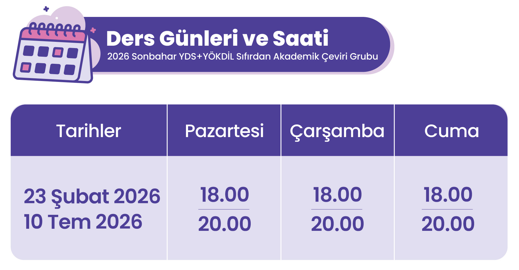 Akademik Çeviri grubumuz sıfırdan sınava hazırlanan YDS - YÖKDİL Hazırlık ve YDS - YÖKDİL Soru & Deneme gruplarımızın çeviri ve okuma – anlama konusunda tamamlayıcı grubudur. Bu gruplarla sınava hazırlanan katılımcılarımıza Akademik Çeviri grubu, çalışmalarında çok fayda sağlayacak ve soruları daha iyi yorumlama yeteneği kazandıracaktır.