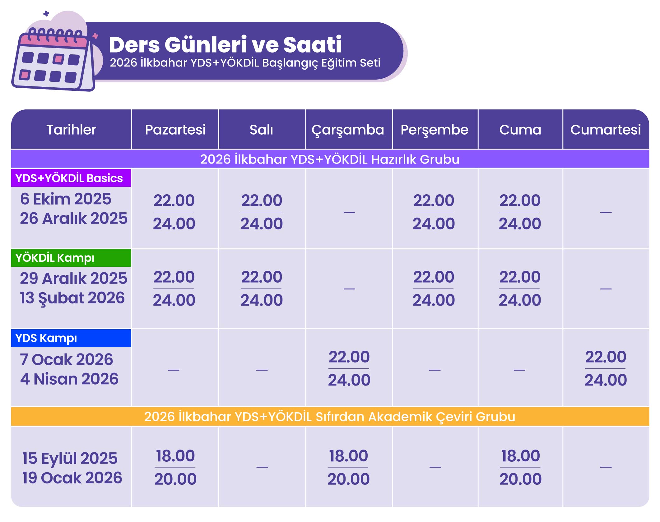 YDS ve YÖKDİL’e sıfırdan hazırlanmak isteyen adaylara Akademik Çeviri dersleri ile desteklenmiş kapsamlı bir program sizleri bekliyor.