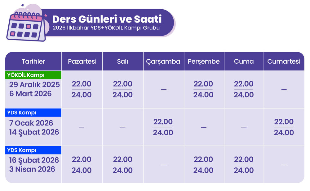 YDS+YÖKDİL Kampı ile her iki sınavda, sizi hedeflediğiniz puana ulaştıran bilgi, teknik ve tecrübeyi 2 aşamada size aktarıyoruz.